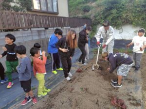自分で植えたものに水をあげたりお世話をし、育っていく過程を観ながら、最後に収穫です。