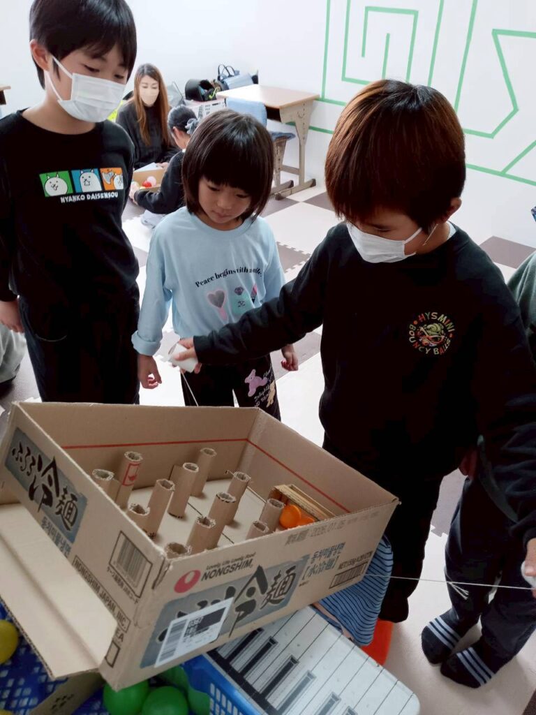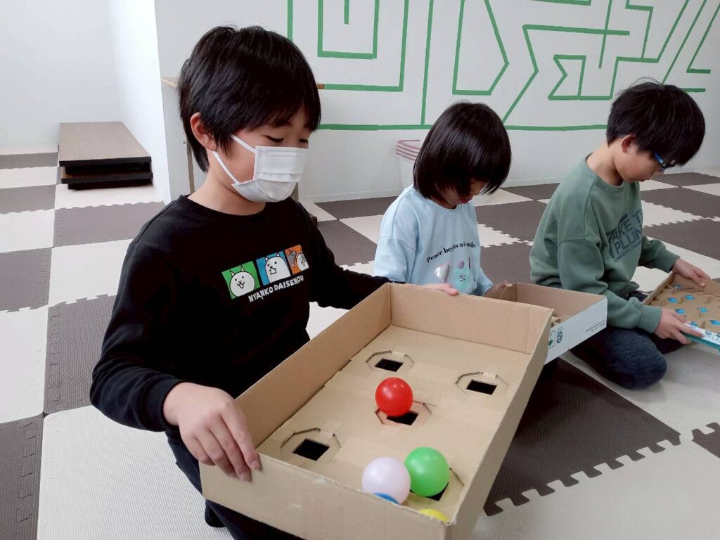 これからもみんなが楽しく遊べるおもちゃを、段ボール箱を使って手作りしていきたいと思います。