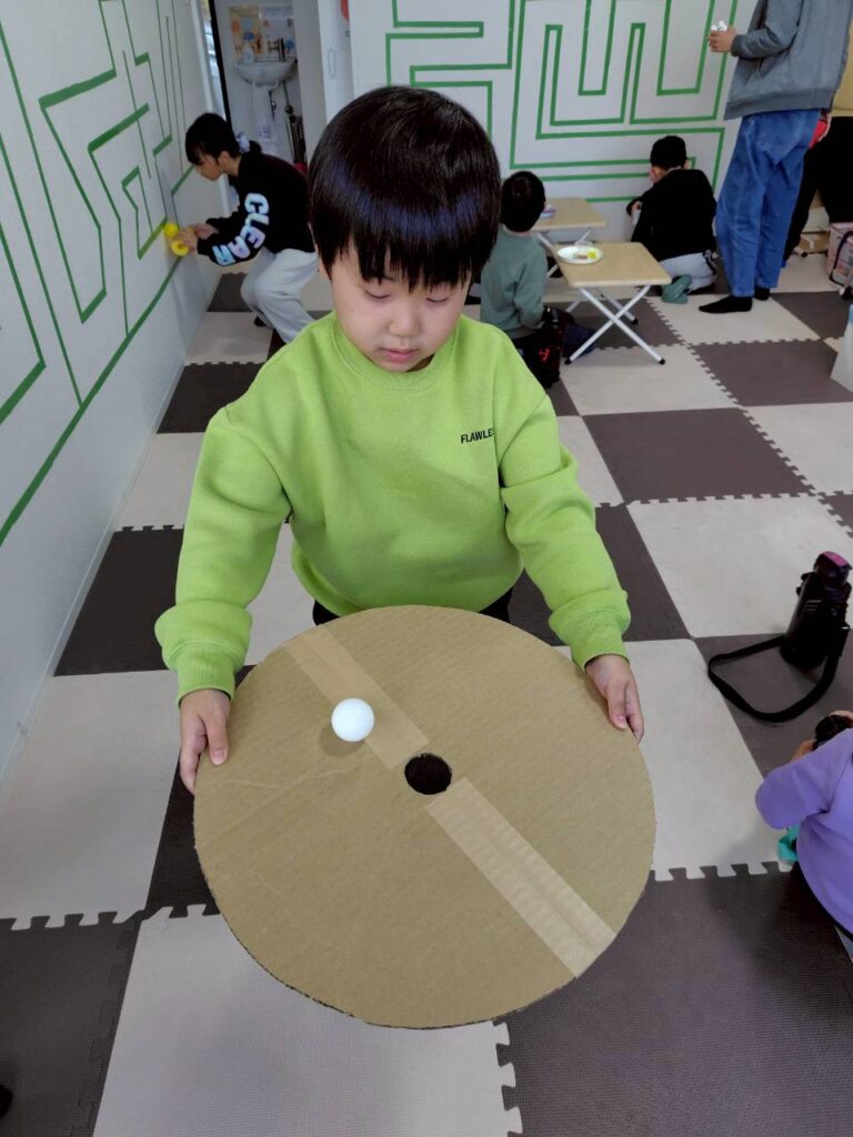 繰り返してやっていると、2球は落とせましたが、3球とも落とせるお友だちはいませんでした。