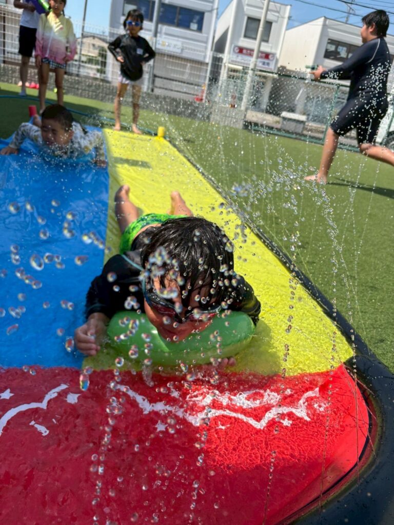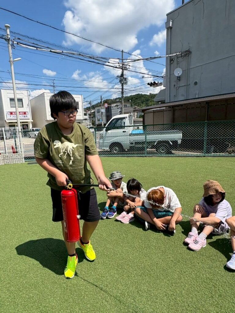 夏休みには水遊びや消防訓練