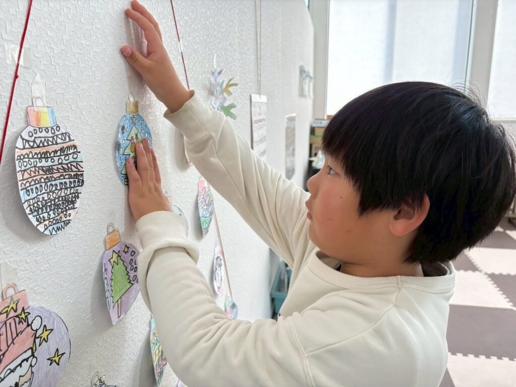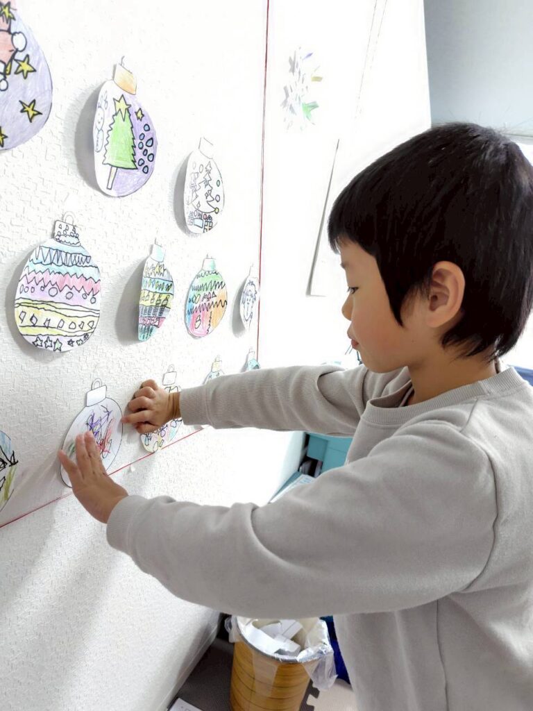 オーナメントが出来上がったので、みんなで飾り付けをしました。