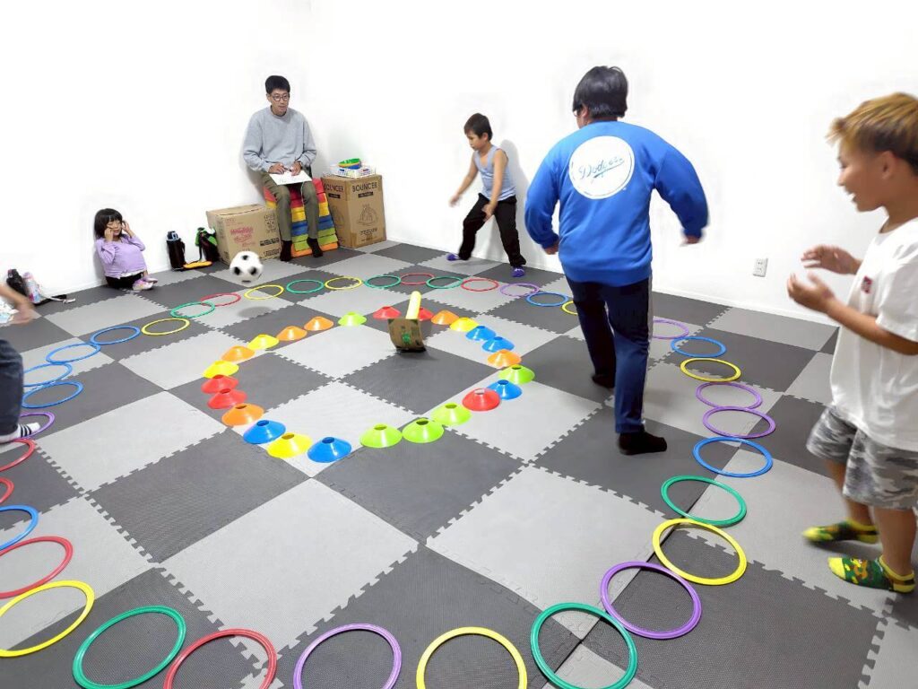 まずは、施設長が守備、子どもたちが攻撃でやってみましょう。