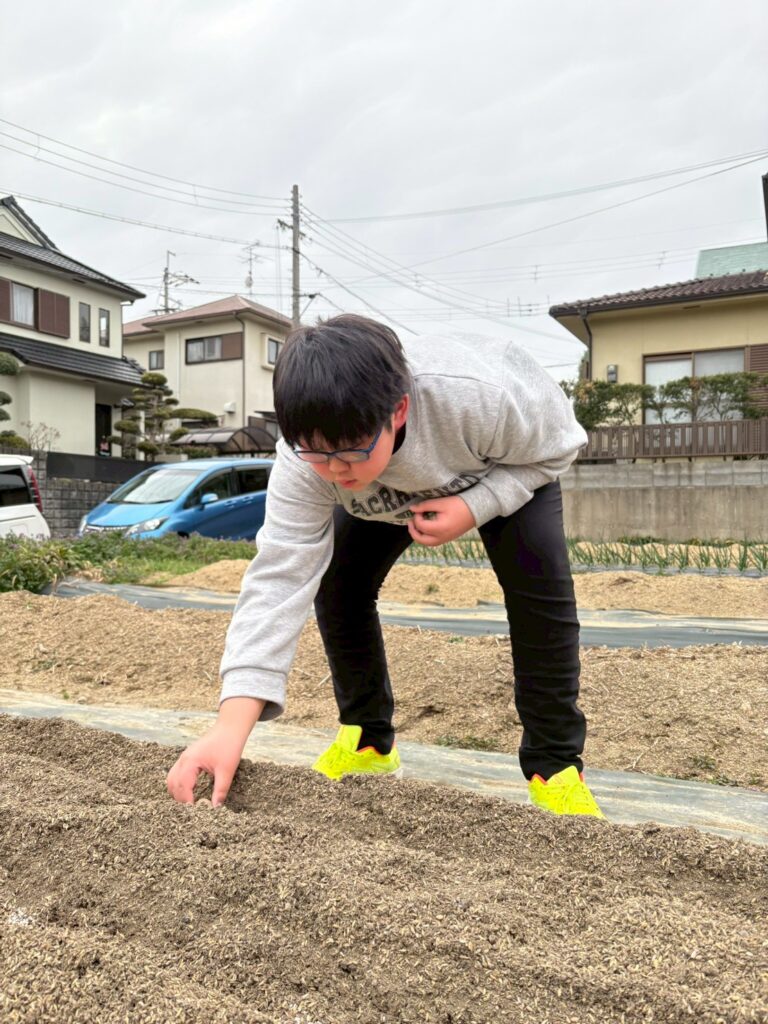 施設長が冬の間も手入れをしてくれていた、わくわく農園の準備ができたので、