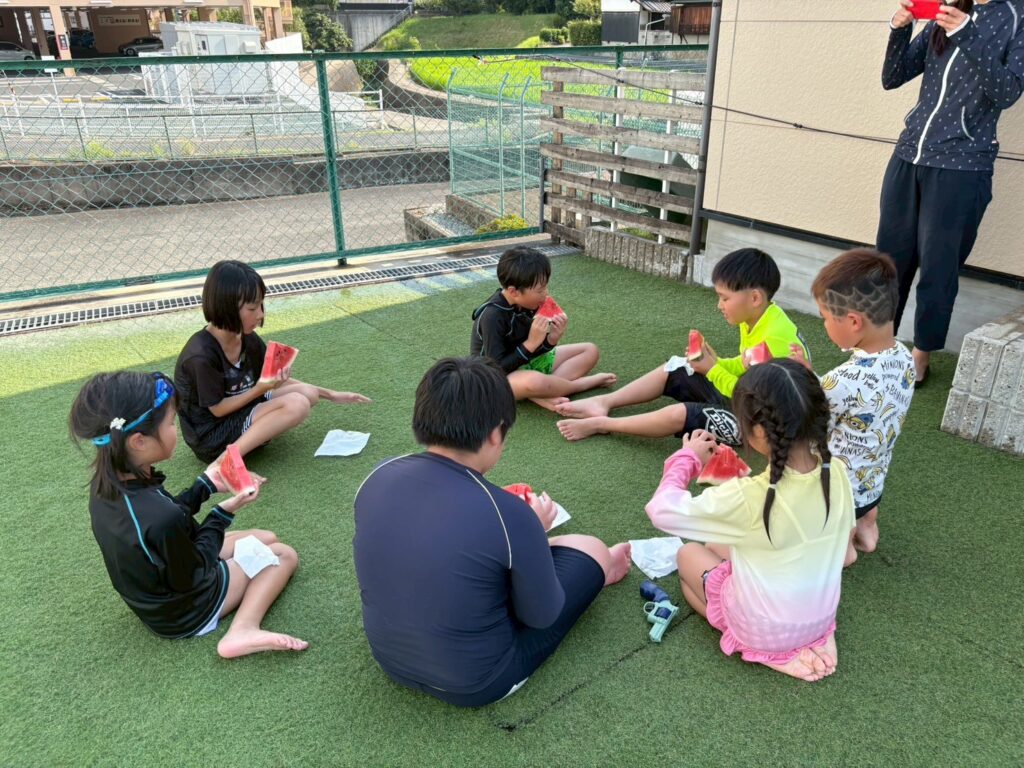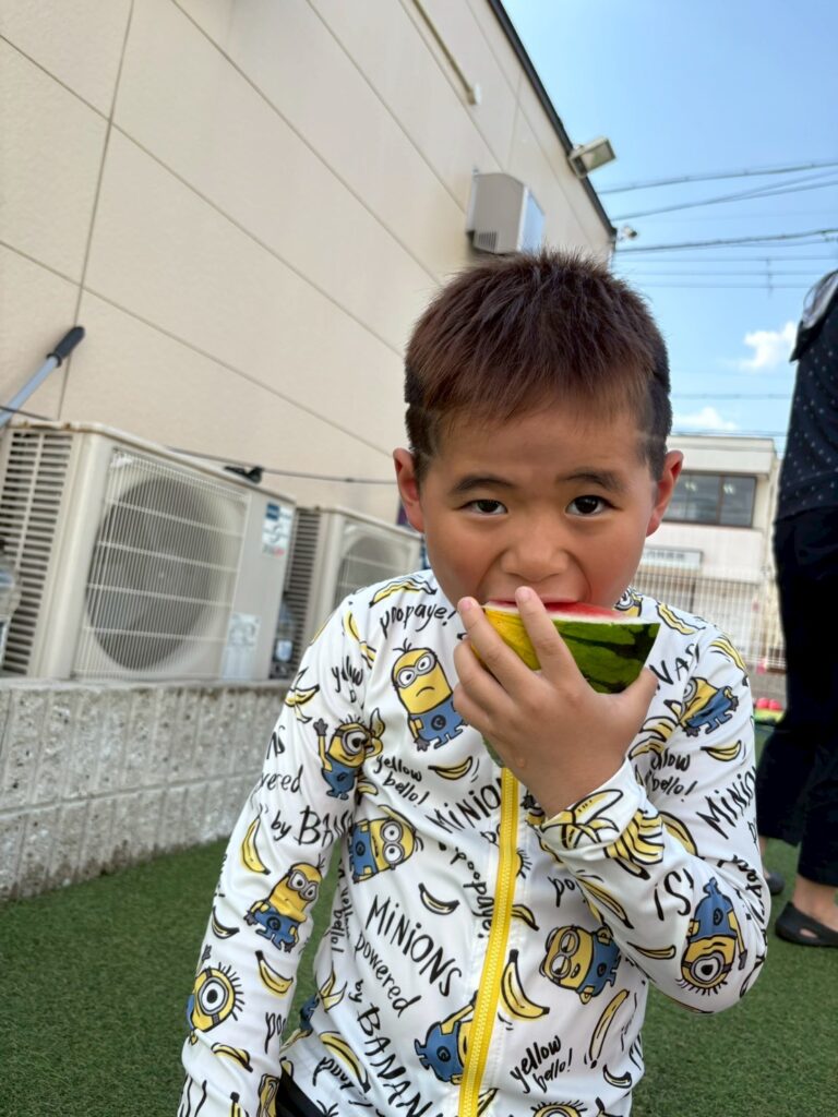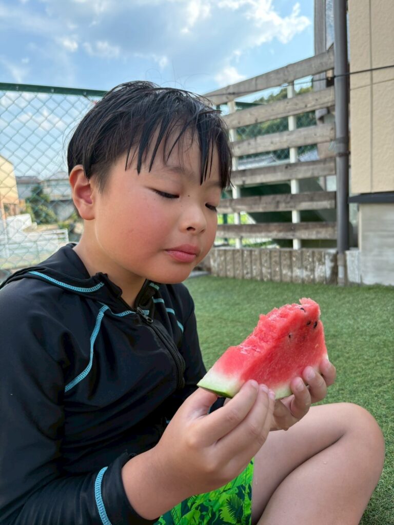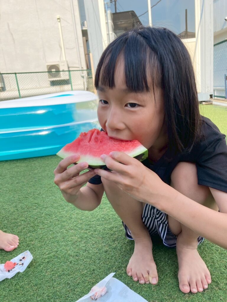 暑い中、外で食べるスイカはより一層おいしく感じられます♩
