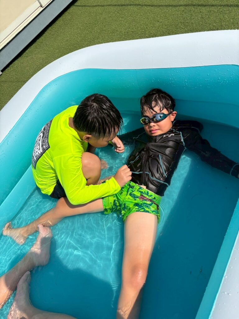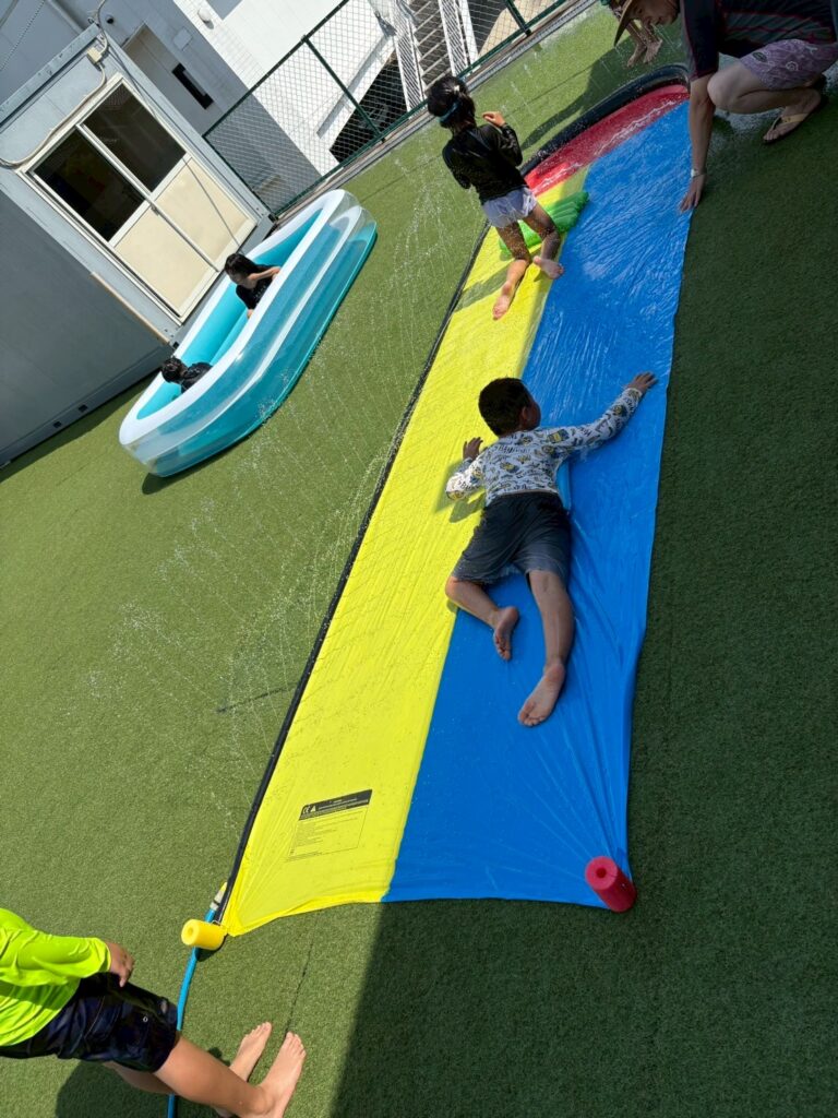 暑い中でしたが、新しいスライダーで滑ったり、水の掛け合いをしたりして、思う存分水遊びを楽しんでくれました✨