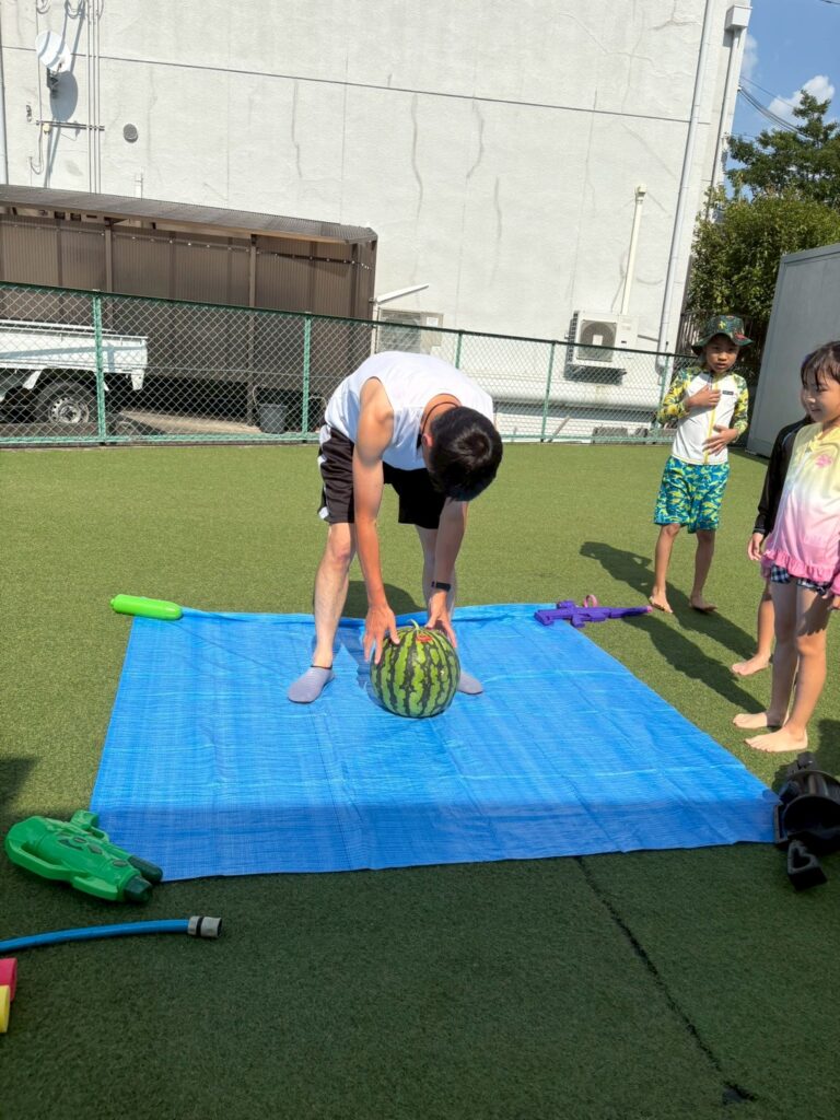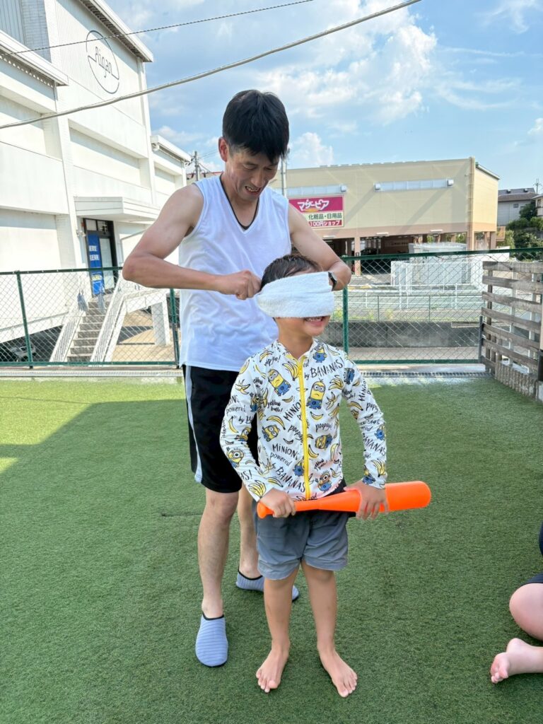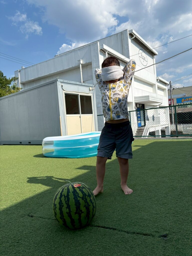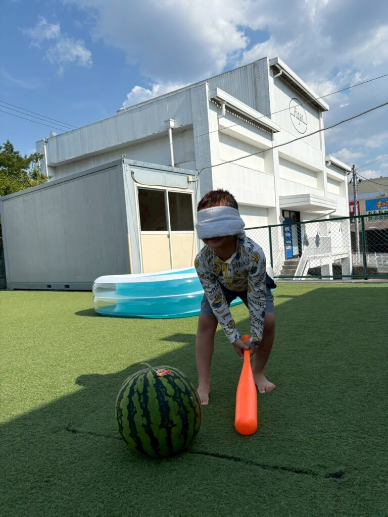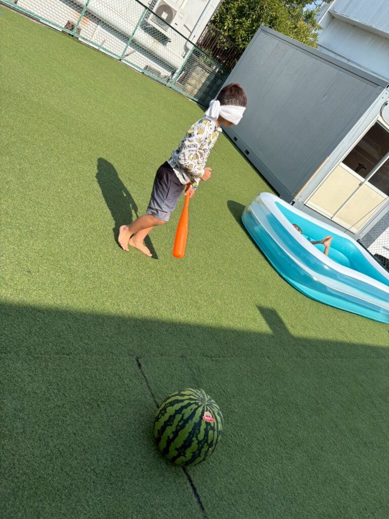 スイカ割りも初体験のお友だちがほとんどでしたが、目隠しをして、怖さと恥ずかしさの中、一歩ずつ前に進んでいく子どもたちがかわいすぎました♡