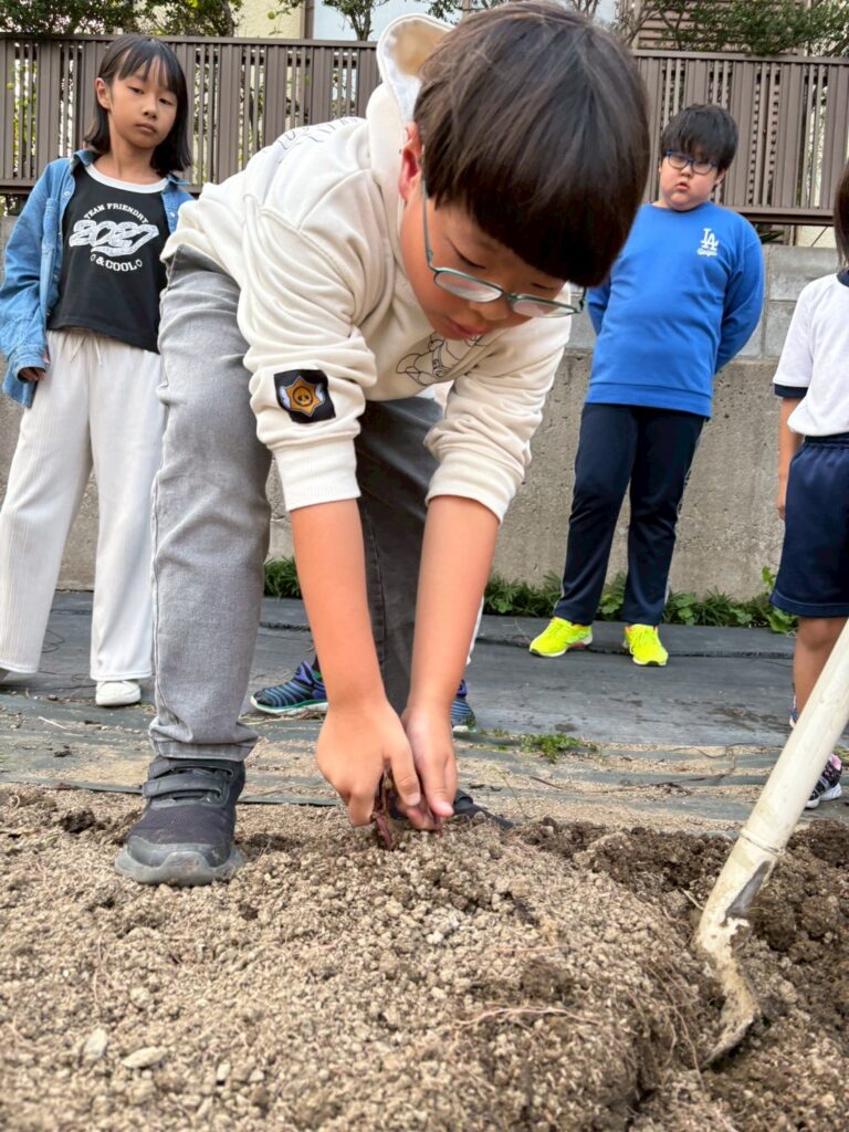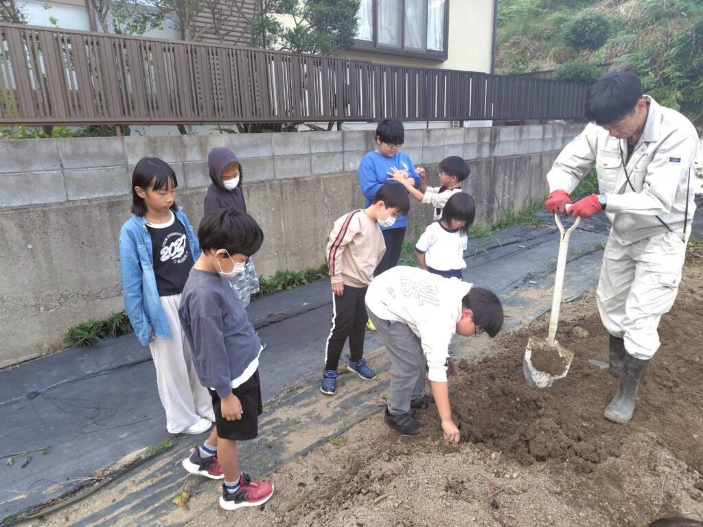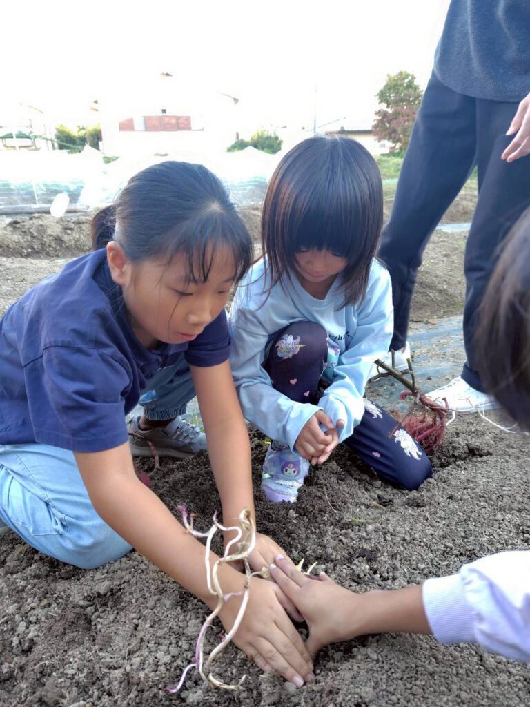 「わくわく農園」では、子どもたちが5月にサツマイモの苗の植え付けをしました。