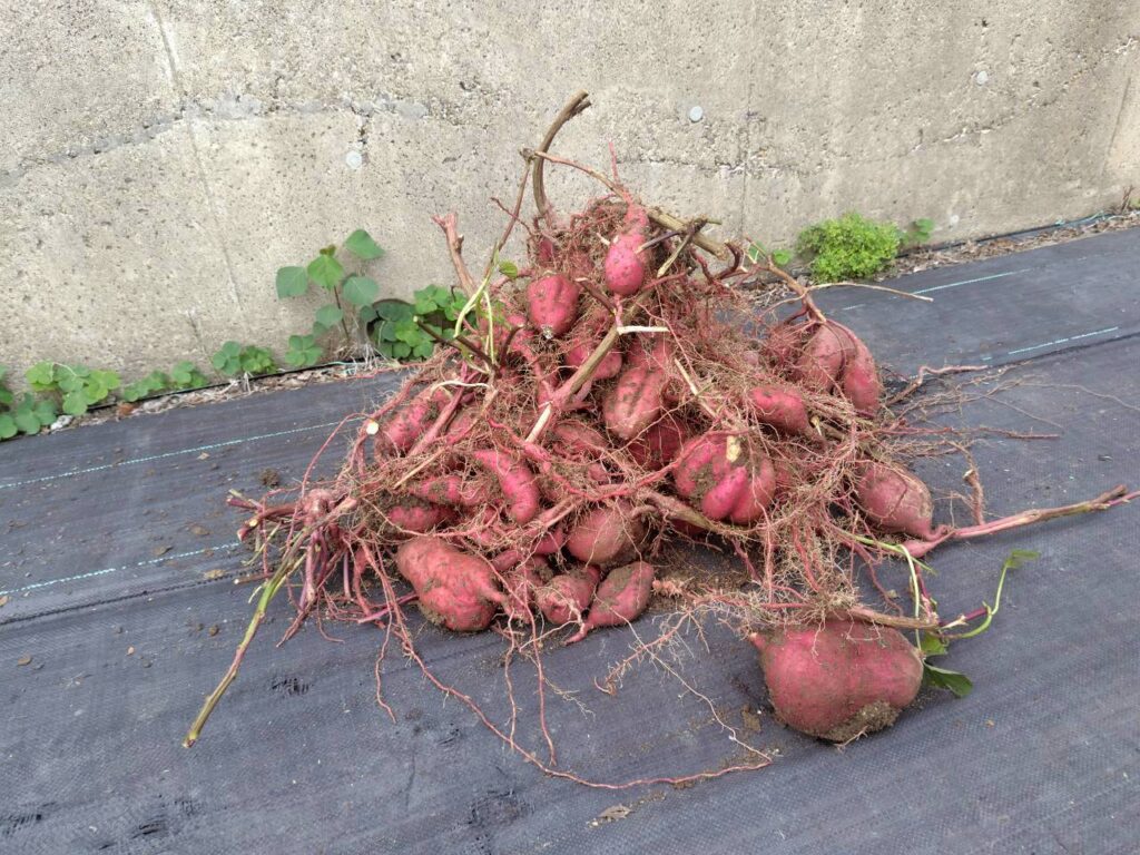 みんなががんばって、たくさんのサツマイモが収穫できました。