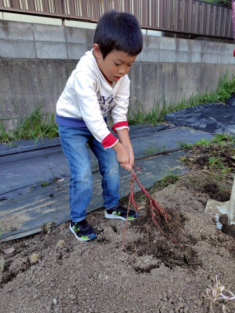 今日は、見学に来ていた年長さんのお友だちも参加しての芋ほりです。