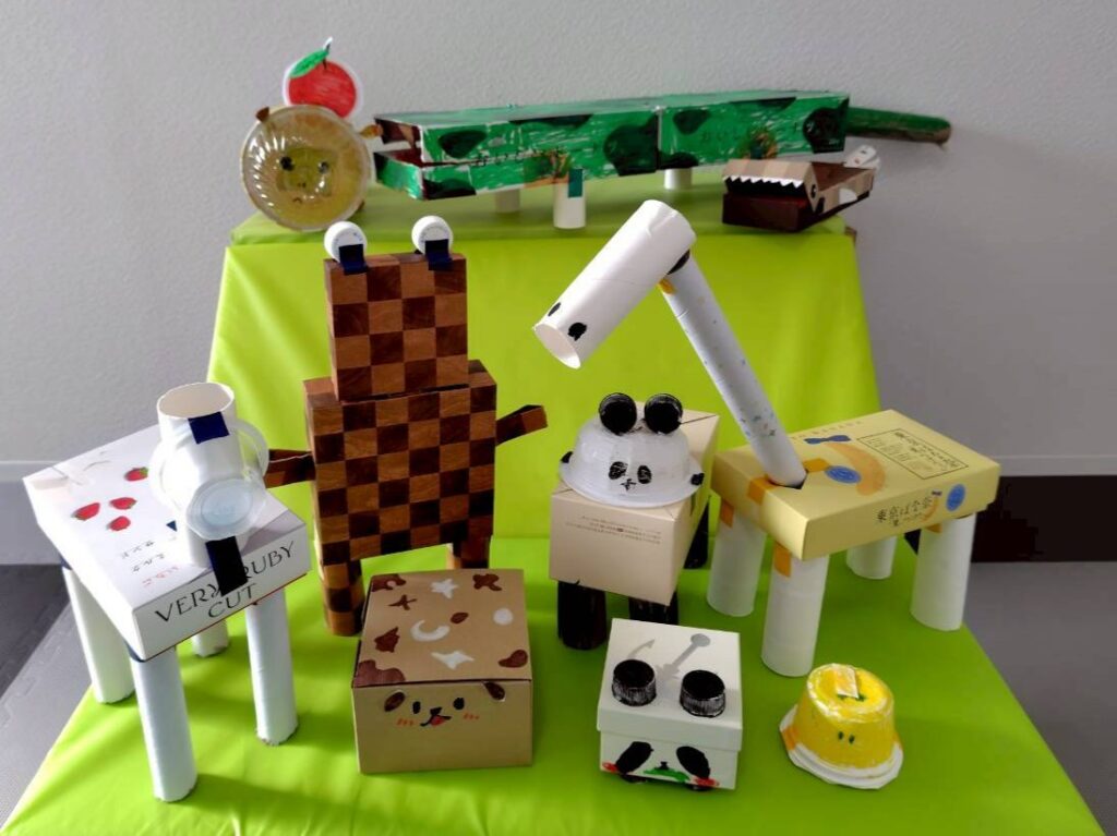 「わくわく」には、遊びに使う段ボール箱がたくさんあります。段ボール箱をそのまま使ってゲームをすることが多いですが、夏休みには子どもたちががんばって段ボール箱を工…